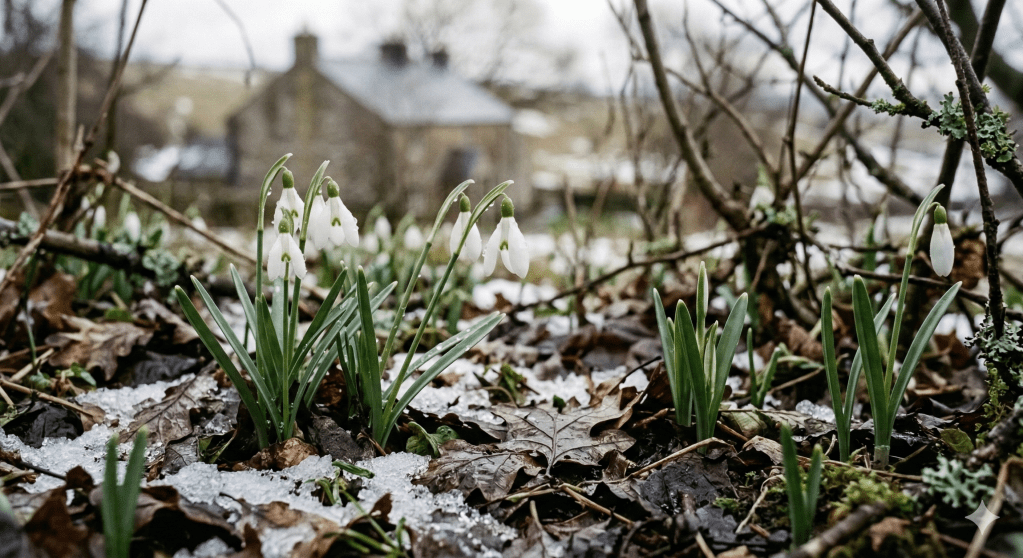 Primăvara te-nsoțește Pe cărarea din grădină care duce la poiană, Zvântând urmele lăsate de vre-o babă mai vicleană, De sub resturi de zăpadă, cu un truc ce te uimește, Cumva, face să apară ghiocelul ce vestește.